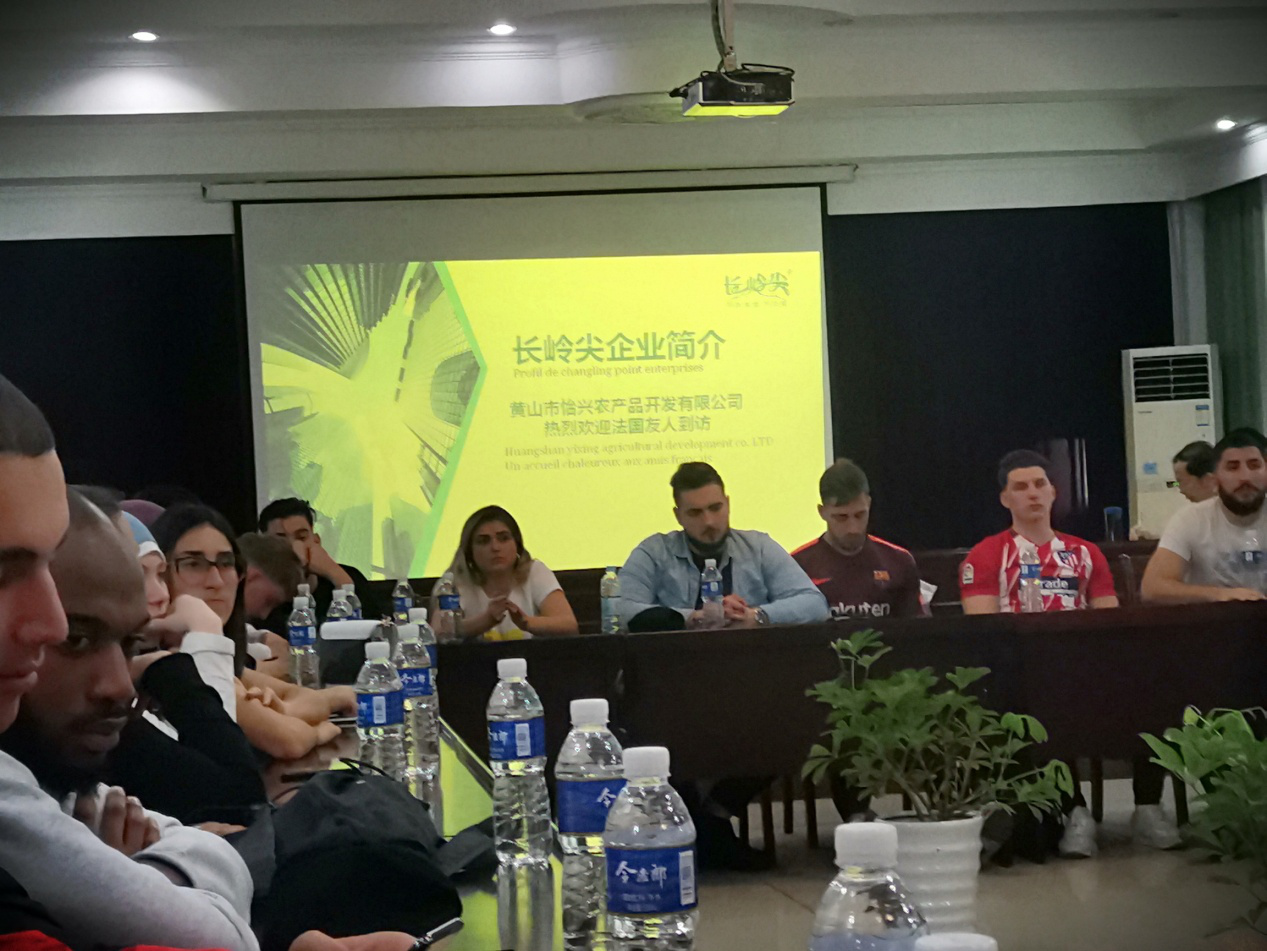 圍繞著法國的紅酒、埃菲爾鐵塔、浪漫主義、極致追求;圍繞著世界的黃山、中國的徽州、徽州的徽商等,進(jìn)行深入的交流討論,從而引出了公司在自有工廠、自有基地、產(chǎn)品保障體系、市場布局能力等方面進(jìn)行了分享與交流。法國的友人們,對公司的情況聽得十分的投入,掌聲不斷。